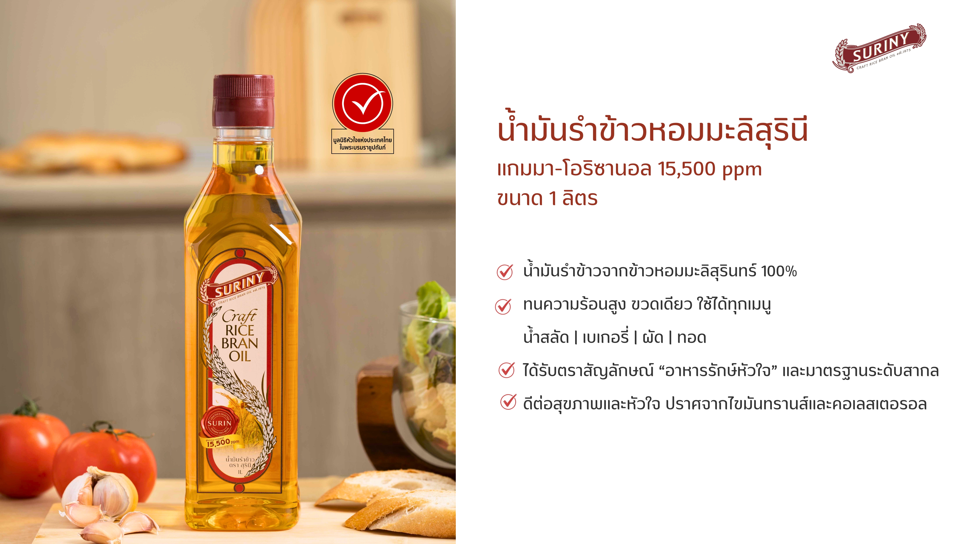 น้ำมันรำข้าวสุรินีทุกขวด ใช้สำหรับผัด ทอด ทำน้ำสลัด