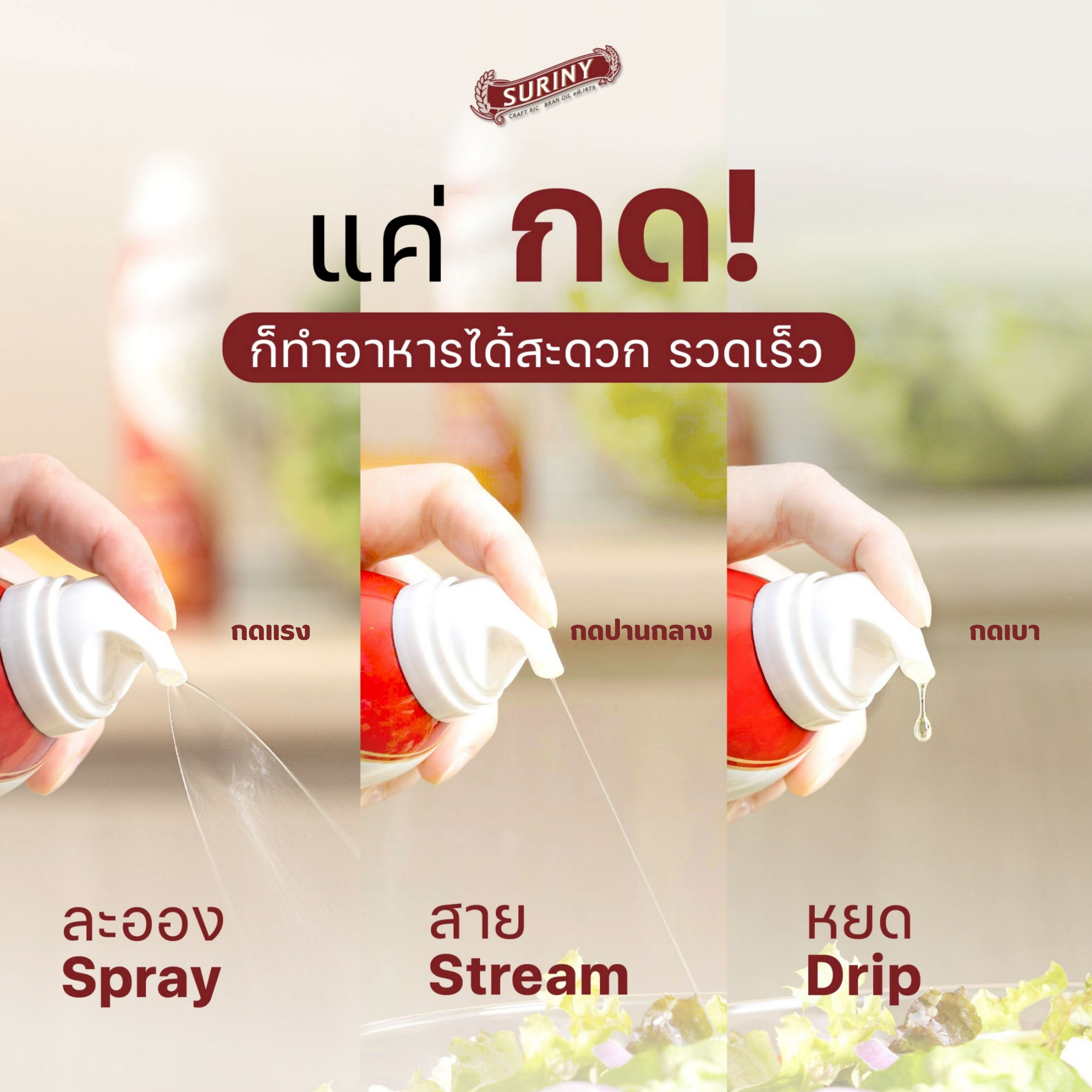 ด้วยรูปแบบ สเปรย์น้ำมัน ที่ใช้งานง่าย คุณจึงสามารถควบคุมแคลอรี ลดการใช้น้ำมันส่วนเกิน และทำอาหารได้หลากหลายเมนู ไม่ว่าจะผัด ย่าง สลัด เบเกอรี่ หรือใช้กับหม้อทอดไร้น้ำมัน